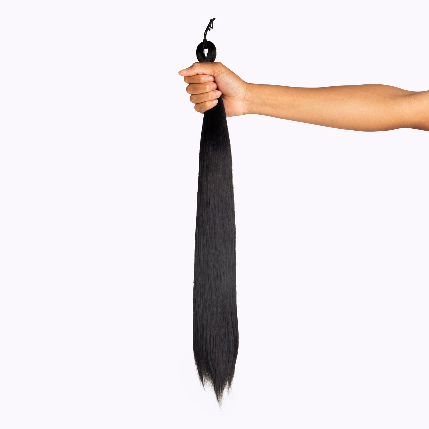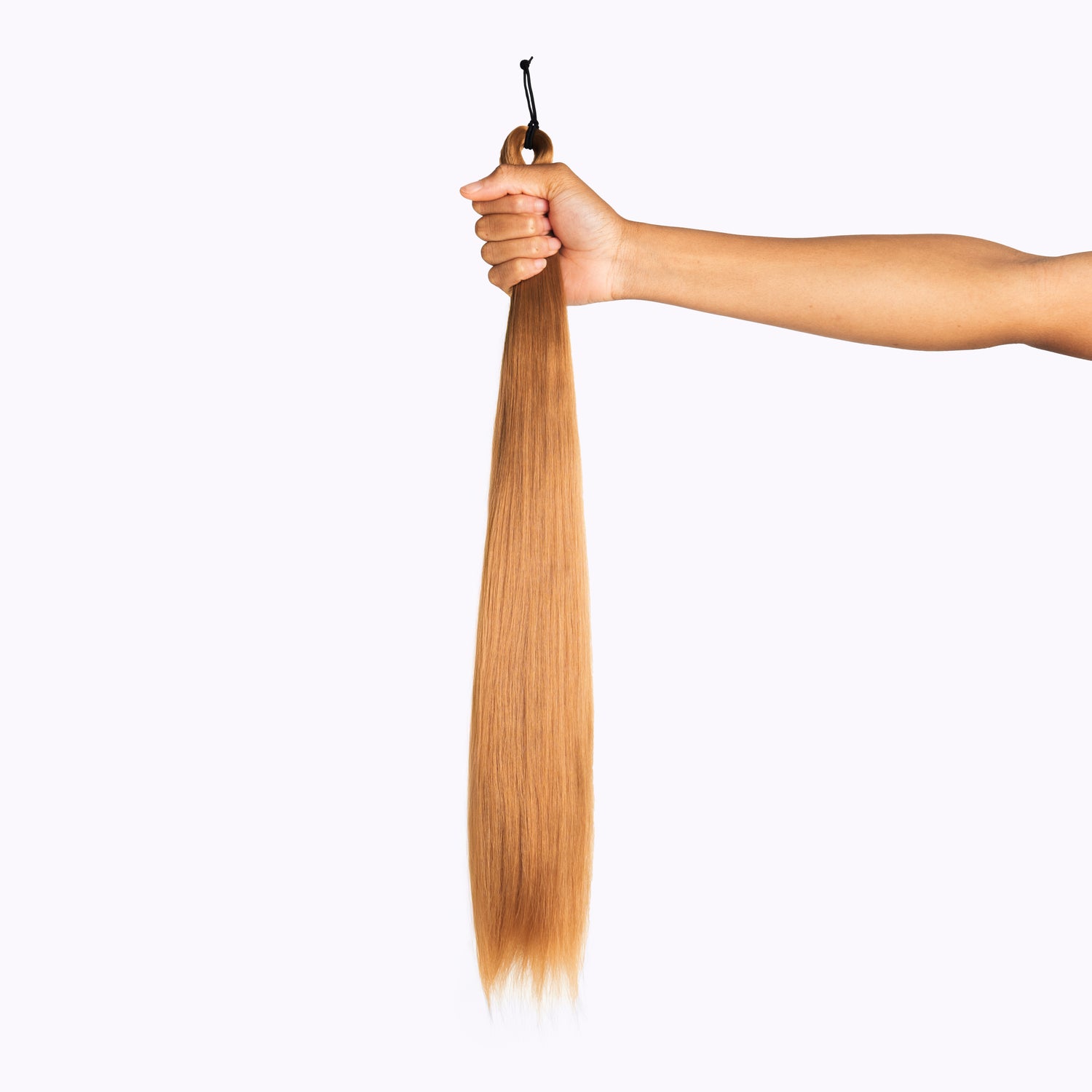 The collagen is then hydrolysed, breaking it down into smaller amino acids that make the fibre stronger, more flexible and easier to style. Unlike many synthetic options made from plastic, collagen proteins are naturally more heat-resistant, making them ideal for safe styling up to 180°C. Finally, the fibres are dyed and set on rods to achieve the desired colours and textures, ensuring consistency across every pack of hair.